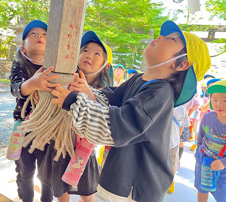 『たのしく遊び、かしこく考え、やさしくふるまう、まじめに取り組む』をスローガンに、心も体ものびのびと育ってほしい。