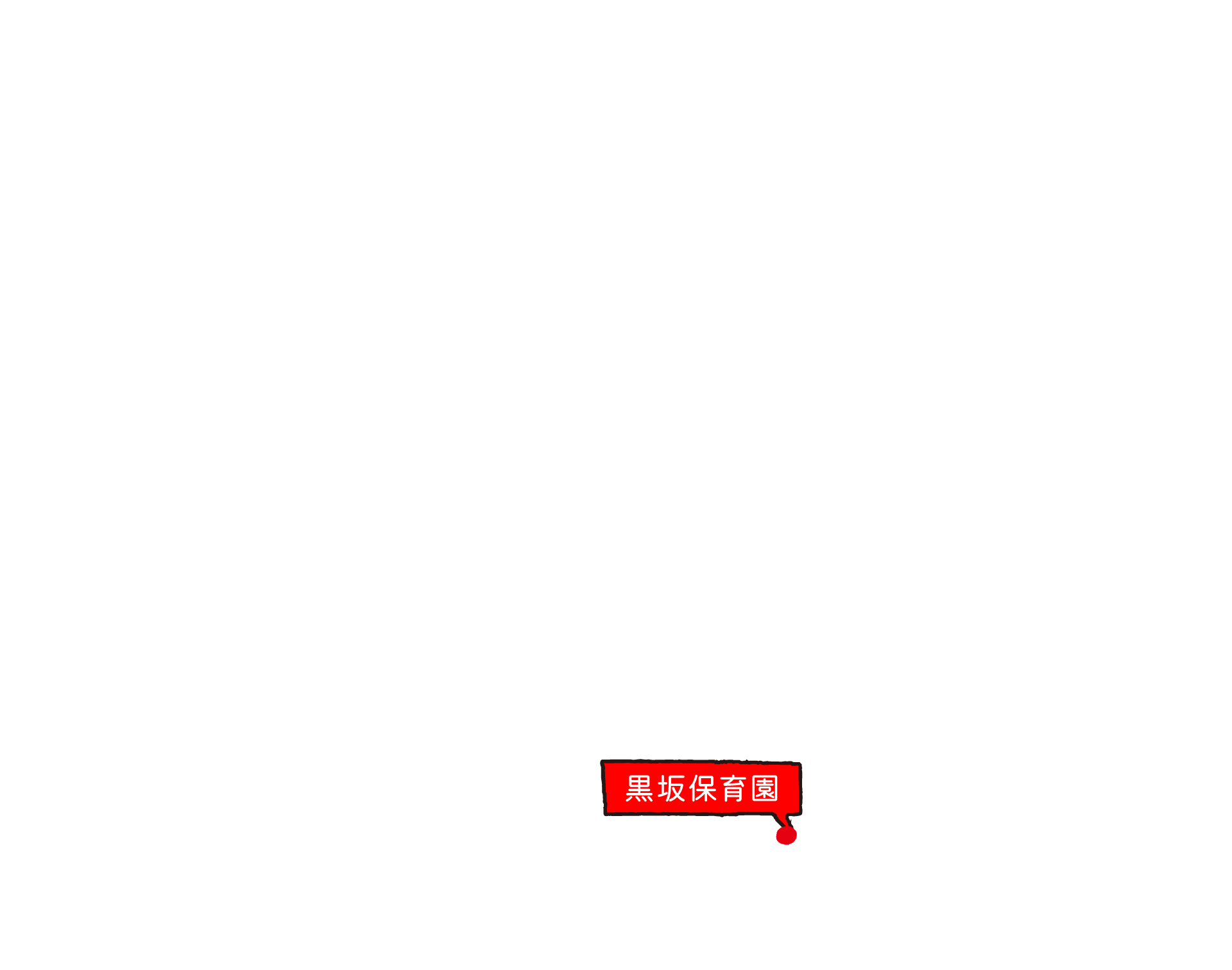 黒坂保育園は、きみの“そだち”の応援団!園のなかすべてが、まるごと“まなび”の宝箱!いろんな“わくわく”見つけにきてね!きみのペースで、大きくなあれ! ~できた!の喜びを自信に~ 「やってみよう!」の気持ちを大切に、様々なことに挑戦します。繰り返し工夫することで、自分だけの面白いアイディアが生まれます。「できた!」の喜びを積み重ね、自信へとつなげます。 ~つながり、助け合い、成長しあう~ みんなで一つのことに挑戦すれば、楽しさや喜びが倍になります。助け合い、励まし合いながら目標を達成することで、心のつながりが生まれ、温かい気持ちで満たされます。その中で、自然と相手を思いやる心が育ち、みんなと仲良く過ごす力が身についていきます。 ~発見と驚きがいっぱい!~ 「なんだろう?」「やってみたい!」という好奇心を大切に、遊びを通して様々な発見や驚きを体験します。自由な発想で試行錯誤することで、創造力や探究心が育まれ、自分なりの表現を楽しむ力が身につきます。 広くて自然豊かな園庭は、子どもたちが思いっきり体を動かせます! 目の前には、園庭よりも広いふれあい広場があります。地域の方々との交流を通して、豊かな心を育みます。 すぐ近くにヘリポートがあり、かっこいいヘリコプターに子ども達は興味深々です。 黒坂観音にもお参りに行き、みんなの健康を祈願します。 散歩コースには畑や田んぼがいっぱい!四季を感じながらの散歩はドキドキ、ワクワク! スライドショーで表示されます~未来につながる学びの場~