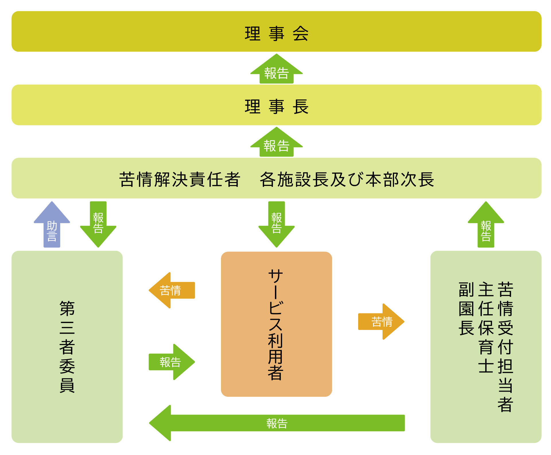 また苦情解決者は、各施設の「園長」となっております。 - 直接相談しにくい時は「苦情相談第三者委員」にご相談ください。
