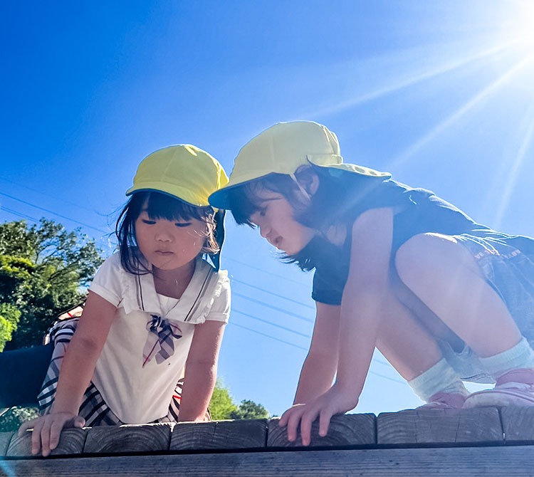 『たのしく遊び、かしこく考え、やさしくふるまう、まじめに取り組む』をスローガンに、心も体ものびのびと育ってほしい。