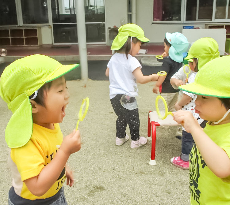 黒坂保育園は、きみの“そだち”の応援団!園のなかすべてが、まるごと“まなび”の宝箱!いろんな“わくわく”見つけにきてね!きみのペースで、大きくなあれ! ~できた!の喜びを自信に~ 「やってみよう!」の気持ちを大切に、様々なことに挑戦します。繰り返し工夫することで、自分だけの面白いアイディアが生まれます。「できた!」の喜びを積み重ね、自信へとつなげます。 ~つながり、助け合い、成長しあう~ みんなで一つのことに挑戦すれば、楽しさや喜びが倍になります。助け合い、励まし合いながら目標を達成することで、心のつながりが生まれ、温かい気持ちで満たされます。その中で、自然と相手を思いやる心が育ち、みんなと仲良く過ごす力が身についていきます。 ~発見と驚きがいっぱい!~ 「なんだろう?」「やってみたい!」という好奇心を大切に、遊びを通して様々な発見や驚きを体験します。自由な発想で試行錯誤することで、創造力や探究心が育まれ、自分なりの表現を楽しむ力が身につきます。 広くて自然豊かな園庭は、子どもたちが思いっきり体を動かせます! 目の前には、園庭よりも広いふれあい広場があります。地域の方々との交流を通して、豊かな心を育みます。 すぐ近くにヘリポートがあり、かっこいいヘリコプターに子ども達は興味深々です。 黒坂観音にもお参りに行き、みんなの健康を祈願します。 散歩コースには畑や田んぼがいっぱい!四季を感じながらの散歩はドキドキ、ワクワク! スライドショーで表示されます~未来につながる学びの場~