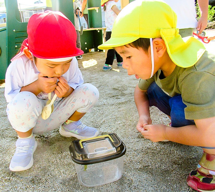 水や土に触れ、生き物たちと出会い、五感を使った体験を通して、生きる力を育みます。